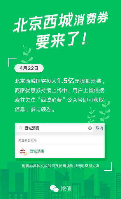 作为西城区稳定经济增活力促发展的官方平台,此次“西城消费”的上线发布,将从供给和需求两端助力,正向促进消费恢复。西城区采用“政府提供支持、平台提供支撑、企业提供资源”的方式,通过补贴商户,向消费者发放定向消费券等多种方式,惠民惠企,进一步扶持区内企业,拉动西城区经济快速恢复。即日起,北京市民可上微信搜索“西城消费”公众号了解最新消息。商家优惠券持续上线中,后续发放时,市民通过公众号实名注册后即可参与领券,收获丰富的促消费“大礼包”。