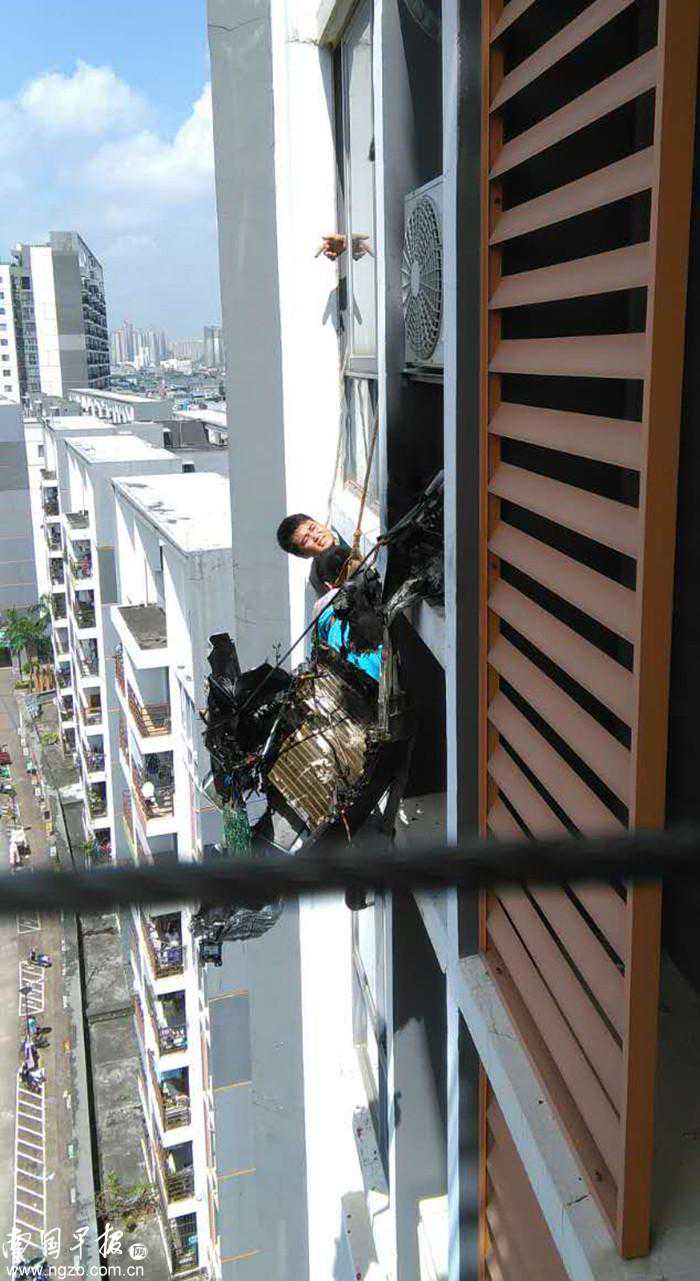 8月19日,在南宁市良庆区蓝波湾小区13楼,一名男子维修空调外机时,外机突然爆炸,维修人员随后受伤。好在维修人员系了安全绳,经历爆炸后悬在半空约半小时。他被救下后,紧急送到南宁市第二人民医院急救。