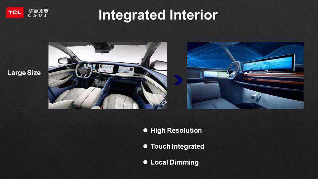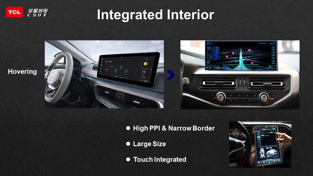 TCL华星可以根据客户需求,提供任何个性化定制形状的。TCL华星的车载显示产品将不再局限于传统的2D显示或者是单方向的形状,而是更贴近车舱内饰弧度的车载显示;