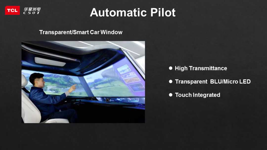 透明显示是未来驾驶体验的关键一环,目前,TCL华星已经针对这个方向进行一些合作和技术方案的调试。“我们相信,未来,不管是广告应用或其它,透明车窗显示屏将成为一种必然的发展趋势。”