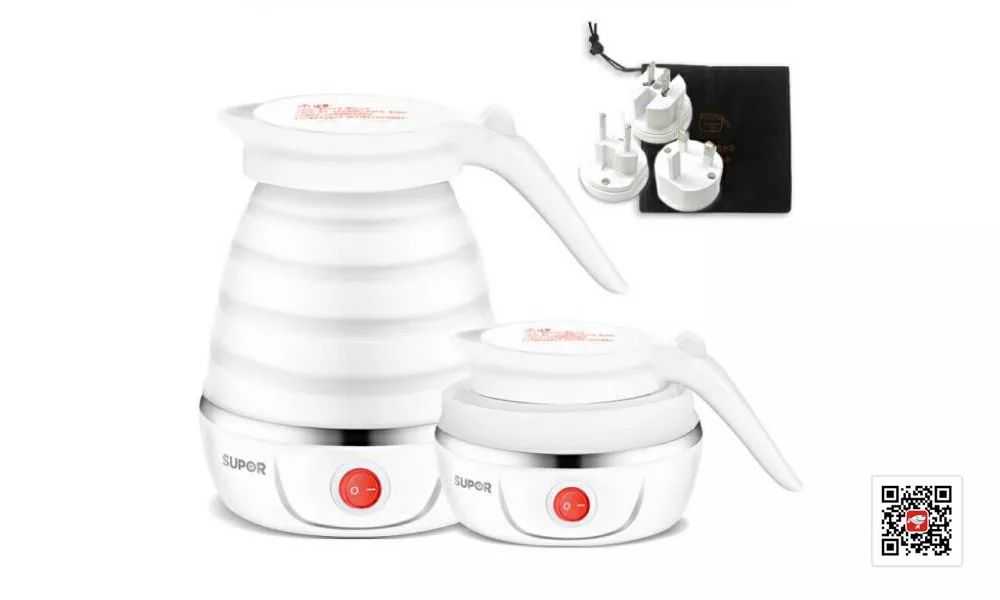 旅行出游不可少~二代升级版便携折叠电水壶中更实现了壶柄以及电源线分离,更加节省了旅行中行李箱空间,采用可折叠硅胶壶体,可压成饼状便于收纳,节省旅行中行李箱空间,解决了国外大部分酒店不提供电水壶,国内酒店电水壶不卫生等等疑虑。