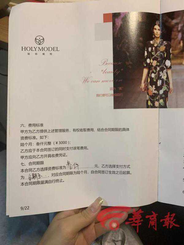 经纪人介绍签约费主要包括后期服装、化妆、培训、推广、包装以及模卡的制作费用。“我干这行3年了,西安有四五家正规的模特公司,都需要签约、交钱,没有不交钱的公司。哪有去了一个公司,你啥都没有、啥都不会,全都由公司提供还不收钱的。”