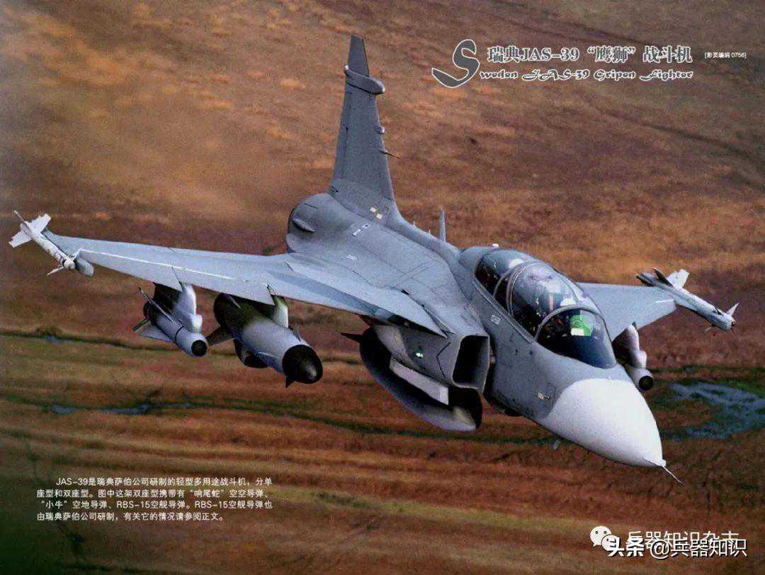 ▲JAS-39“鹰狮”战斗机与其使用的机载武器,可以看到RBS-15空舰导弹。