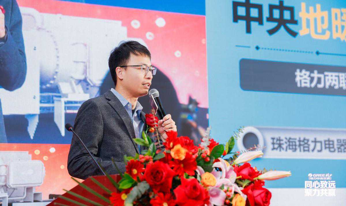 珠海格力电器股份有限公司商用空调经营部部长曹勇做精彩致辞。他表示,2023年整体经济不景气,但是格力逆势而为,取得了很好的成绩,其中热泵板块增幅超过30%,而这一成绩的离不开各位经销商和合作伙伴的共同努力。未来,格力将努力贯彻执行总部的战略规划,加大产品研发和技术创新力度以及渠道拓展和扶持力度,助力合作伙伴开拓市场。