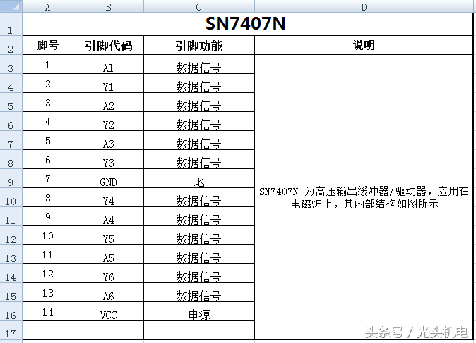 SN7407N为高压输出缓冲器/驱动器,应用在电磁炉上,其内部结构如下图所示。