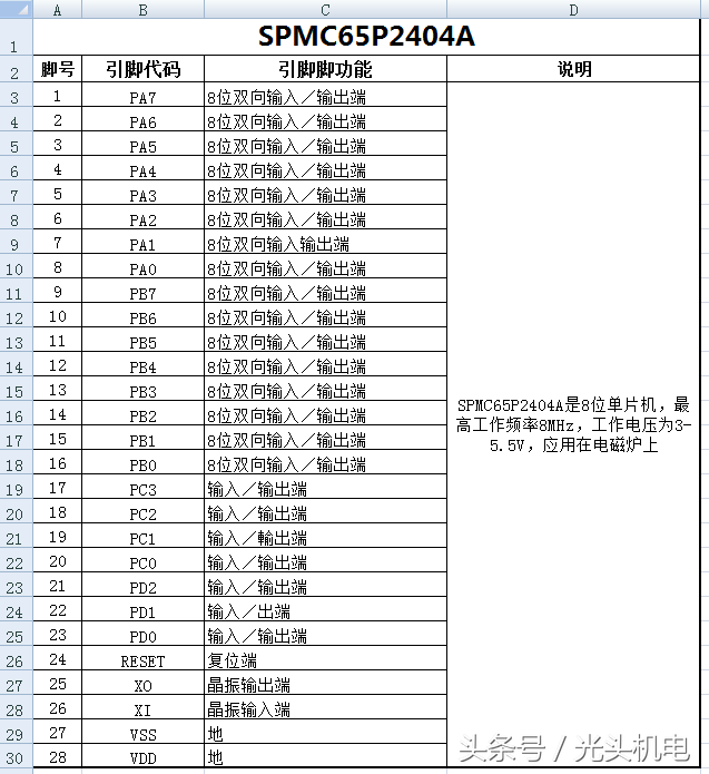 这种IC是8位单片机,最高工作频率8MHz,工作电压为3-5.5V,应用在电磁炉上。