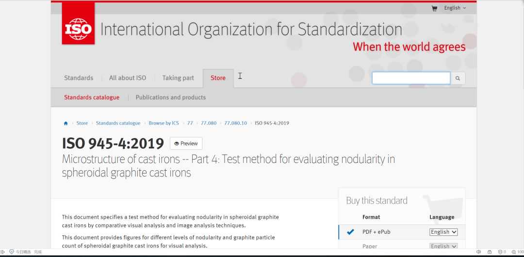 根据国际标准化组织规定,新制定国际标准必须经过新工作项目立项(NP)、工作草案(WD)到最终稿(FDIA)等五个阶段,且每个阶段均需经ISO/TC25成员国投票表决,表决通过才能进入下一阶段;从标准立项到标准颁布一般为48个月,此标准比规定期限提前了4个多月。一个国际统一的球墨铸铁球化率评定标准的颁布,不仅有利于对于球墨铸铁材料的质量控制,以及球墨铸铁产品的国际贸易,而且也有利于专业技术人员的国际交流。