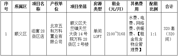 此次配租房源涉及2个项目,房源共430套,其中万科泊寓28街区项目320套、首开乐尚公寓110套。
