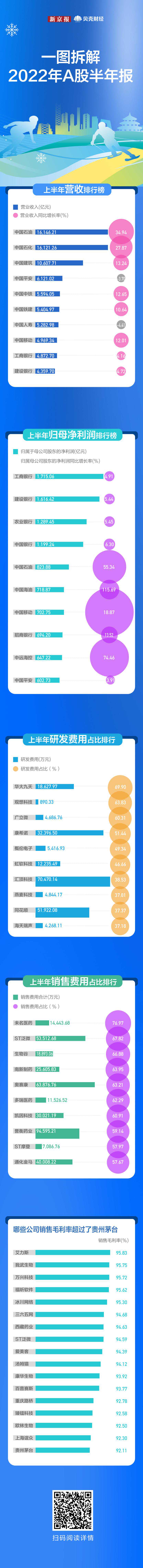 随着8月结束,A股上市公司2022年上半年业绩报告披露完毕。数据显示,截至9月2日收盘,A股上市公司总数达到4900家,除*ST海伦延期披露财报外,均披露年中业绩,收入规模达到34.5万亿元,净利润规模达到3.24万亿元,同比增幅分别达到了8.48%、3.33%。