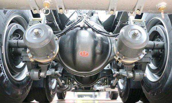 驱动桥有青特和汉德品牌两种选择。弹簧片数是10/10+8,后桥速比有4.33、4.56、4.875三种选择。