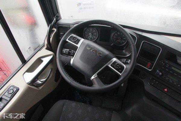 江淮格尔发A5XⅢ的驾驶室可以称得上是整车亮点,高顶双卧铺平地板设计,储物空间和休息区表现自然无需多言。并且向多功能方向盘、定速巡航、后视镜电调电加热、气囊座椅等舒适性配置都在这台格尔发A5XⅢ上有配备。