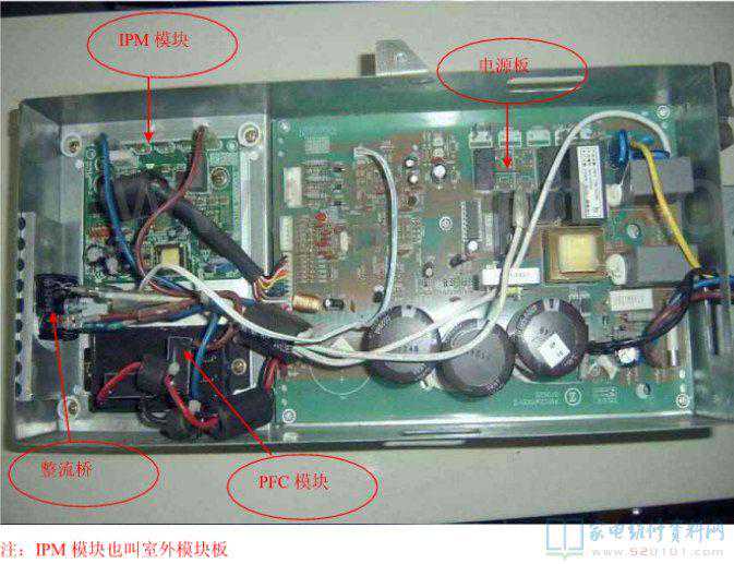 (1)、室外板上电源灯不亮时,可以通过一下方法检测如下图所示