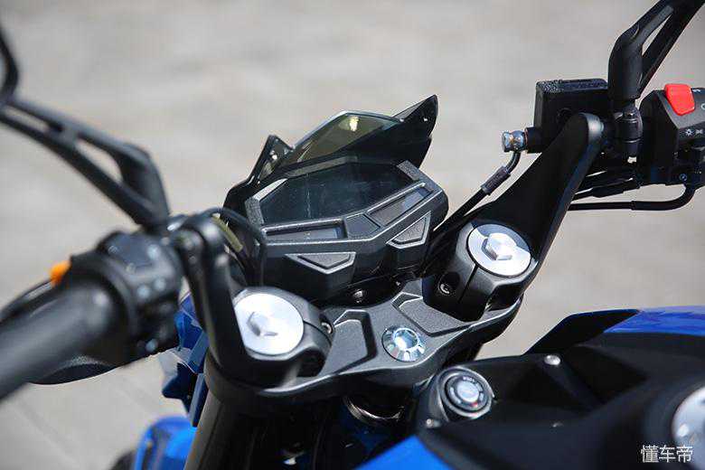 为了让车头不是那么单调,加入了一个翼型小挡风,挡风后面是一块全液晶屏,常用的档位数、油量、速度值等一眼便识。