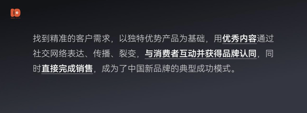 于是乎,对于观夏这样的新零售品牌来说,天生就是伴随着社交网络诞生的,找准客户需求,以独特优势产品为基础,用优秀的内容能力通过社交网络表达、传播、裂变,全面与消费者互动并得到品牌认同和向往,同时直接完成销售。“找到精准的客户需求,以独特优势产品为基础,用优秀内容通过社交网络表达、传播、裂变,与消费者互动并获得品牌认同,同时直接完成销售,成为了中国新品牌的典型成功模式”。
