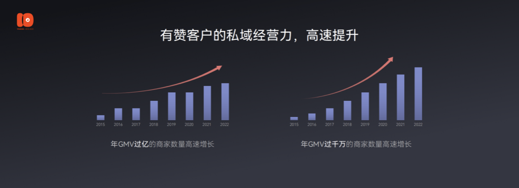 可以说,过去十年有赞逐步成长的过程就是“私域经济”不断清晰、明确,并细化到得已实现复制的过程。一路走来,我们成长了很多,也看到了无数优秀商家们的成长,有赞服务的这些商家,到都是各自行业的引领者,于是有赞也就成为了商家服务行业的引领者。