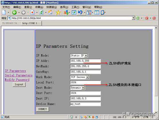 2.保证路由器192.168.0.1和ZLSN模块处于同一个局域网中(中间没有跨网关,否则要再做一级映射)。然后打开ZLSN模块电源。