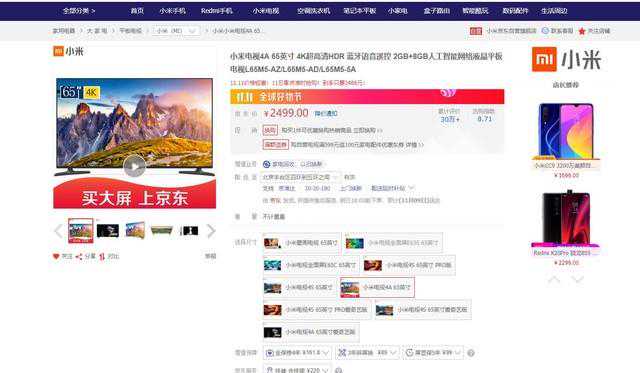 当然创维、TCL也有这个价位段的65吋产品,注意,小米已经不是低价的代名词了,其他家电品牌不比它贵,推荐它的原因是在这个价格段,它更有号召力。