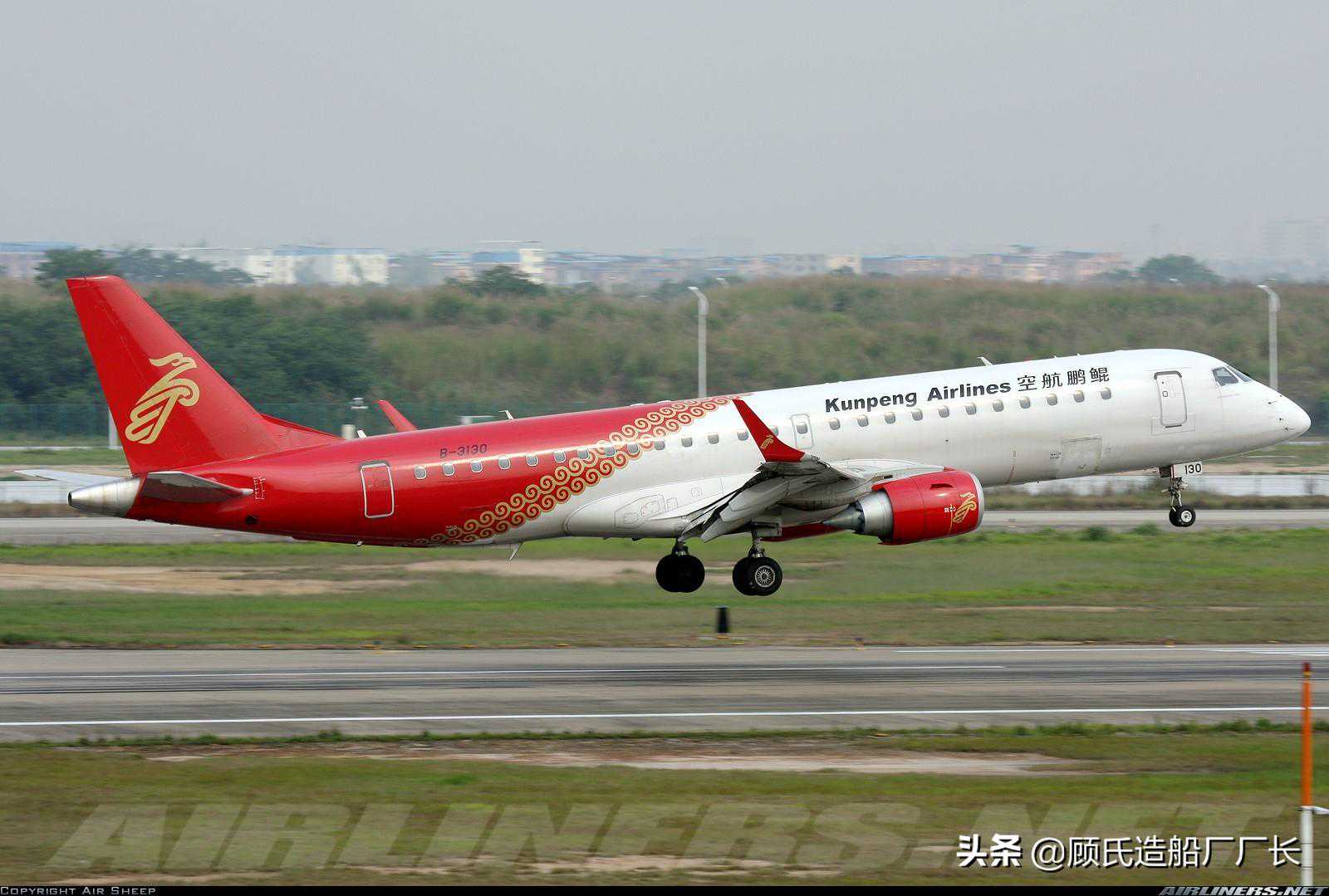 鲲鹏航空B-3130号EMB-190LR支线客机生前遗照