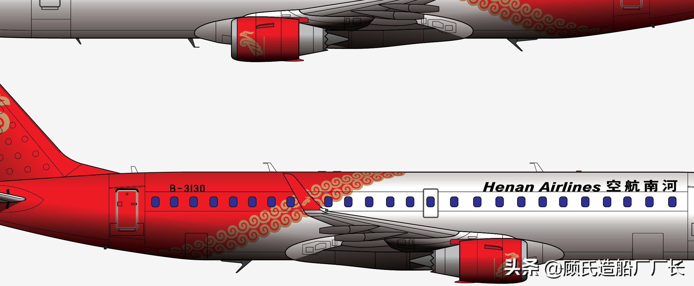 本厂长绘制的河南航空B-3130号EMB-190LR支线客机二视图