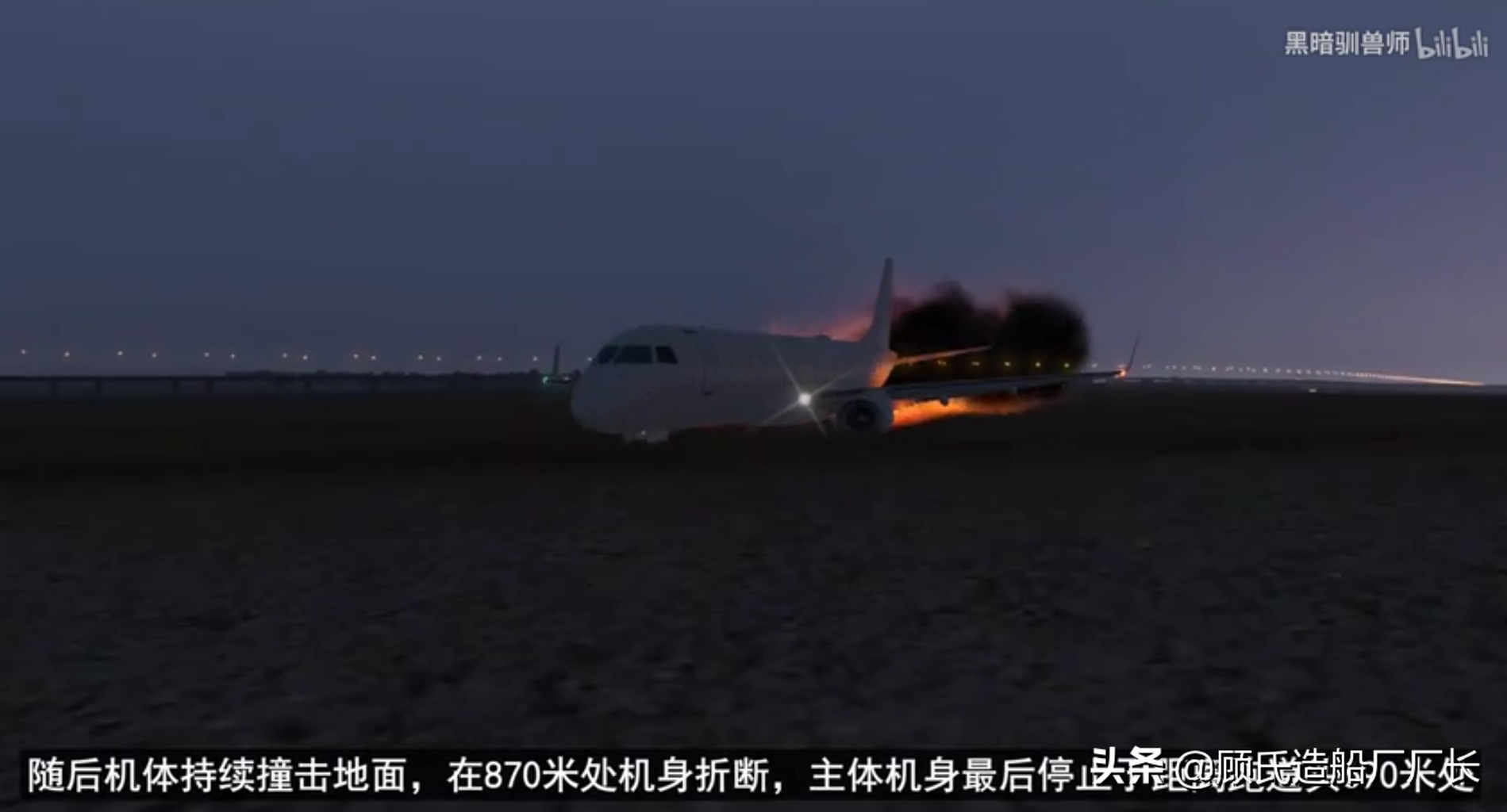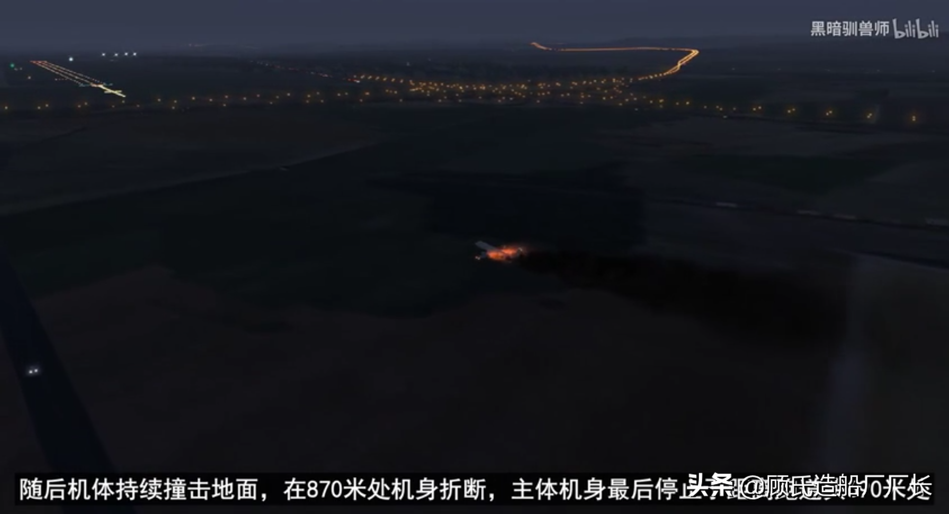 电脑模拟,坠毁在伊春机场30号跑道延长线690米处的VD8387航班,黑暗驯兽师