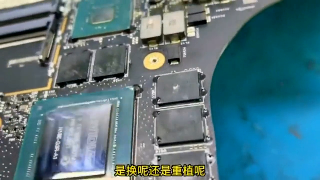 像这种主板做BGA的次数尽量不要太多,像这种板子你可能焊个四五六七八次,它的焊盘会漏铜,甚至有可能会变形,你再换的话它就焊不上了。所以像这种二修的还是尽量不换核心比较好。像这种我推荐你要么去换主板,要么就改用集显算了。