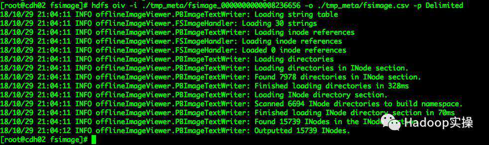 [root@cdh02fsimage]hdfsoiv-i./tmp_meta/fsimage_0000000000008236656-o./tmp_meta/
