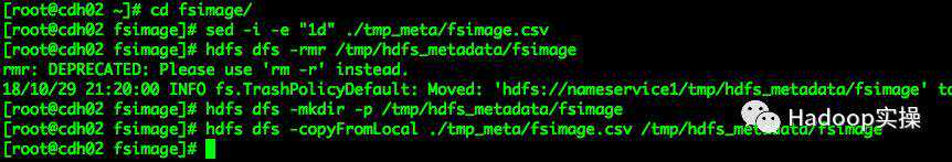 [root@cdh02fsimage]hdfsdfs-rmr/tmp/hdfs_metadata/fsimage[root@cdh02fsimage]hdfsdfs-copyFromLocal./tmp_meta//tmp/hdfs_metadata/fsimage