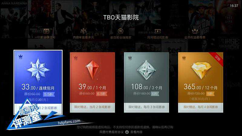 影视会员中内置的是TBO天猫影院内容,要观看全部内容需要付费,TBO天猫影院的会员收费情况如下: