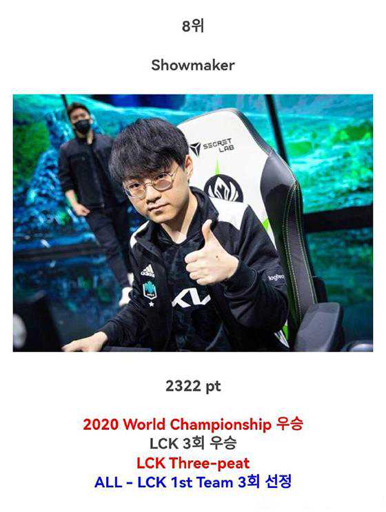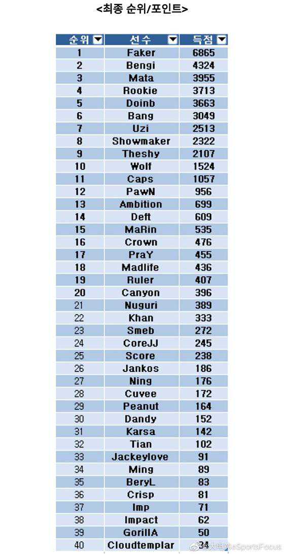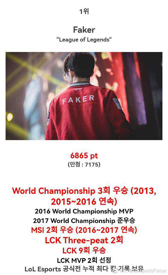 1.Faker(“LeagueofLegs”),6865票