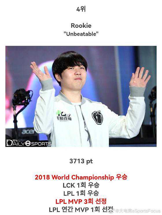 4.Rookie(“Unbeatable”),3713票