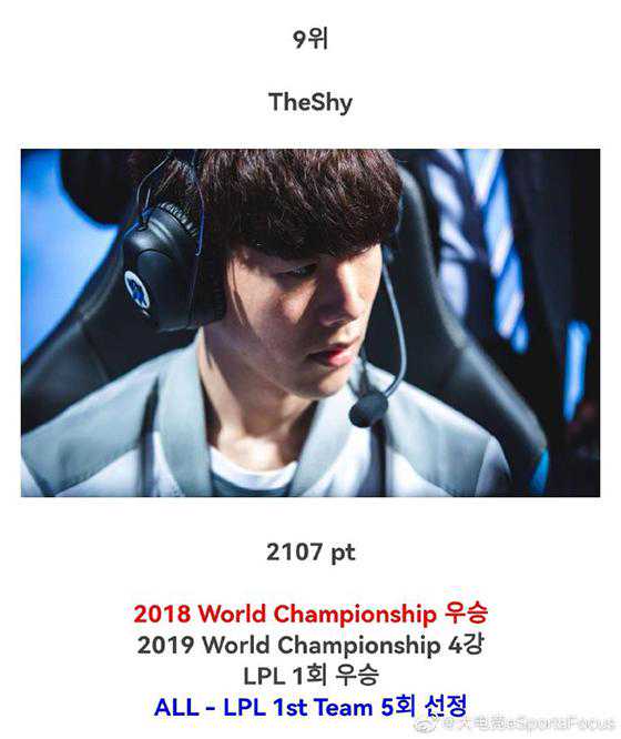 9.TheShy,2107票