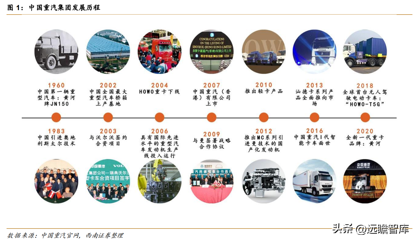 公司成立于1998年9月,1999年上市,主要从事重型载重汽车、重型专用车底盘、车桥等汽车配件的制造及销售业务,依托于完整高效的全球化布局,集团口径下的重卡出口已连续17年保持国内重卡出口龙头地位,并且今年集团凭借强大的产品竞争力,也一跃成为国内重卡龙头。