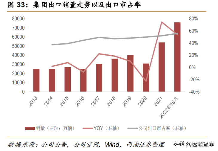 海外市场借助于重汽国际的完善网络布局以及高效战略突破,集团已连续17年保持国内出口第一,并且出口份额持续提升,从10年前40%不到提升至目前50%以上,22年前10月,集团出口7.6万辆,同比增长54%,10月单月,集团单月出口已突破万辆,创下单月历史新高。