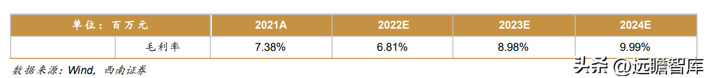 基于以上假设,我们预测公司2022-2024年分业务收入成本如下表: