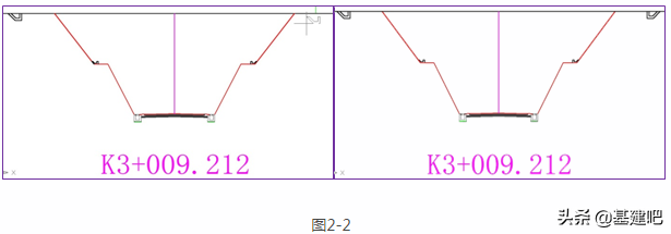 答案:“Ctrl+C”“Ctrl+V”,即复制、粘贴,简单而高效!如将标准断面左侧已编辑好的边坡部件复制后,CAD提示指定插入点时,将边坡起点位置靠近右侧坡脚位置粘贴即可,如图2-1: