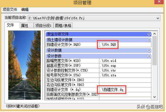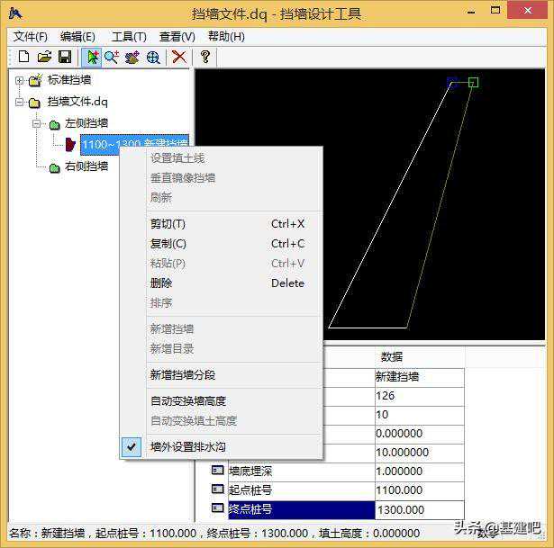 支挡构造物处理或者纬地挡土墙设计完成之后,返回纬地道路软件中,可在“项目管理器”中查看到其对应的*.dq或者*.DQD(如下图所示),横断面戴帽时系统将自动调用这两个文件,出图时在横断面图上增加挡土墙断面并自动计算其土石方量。