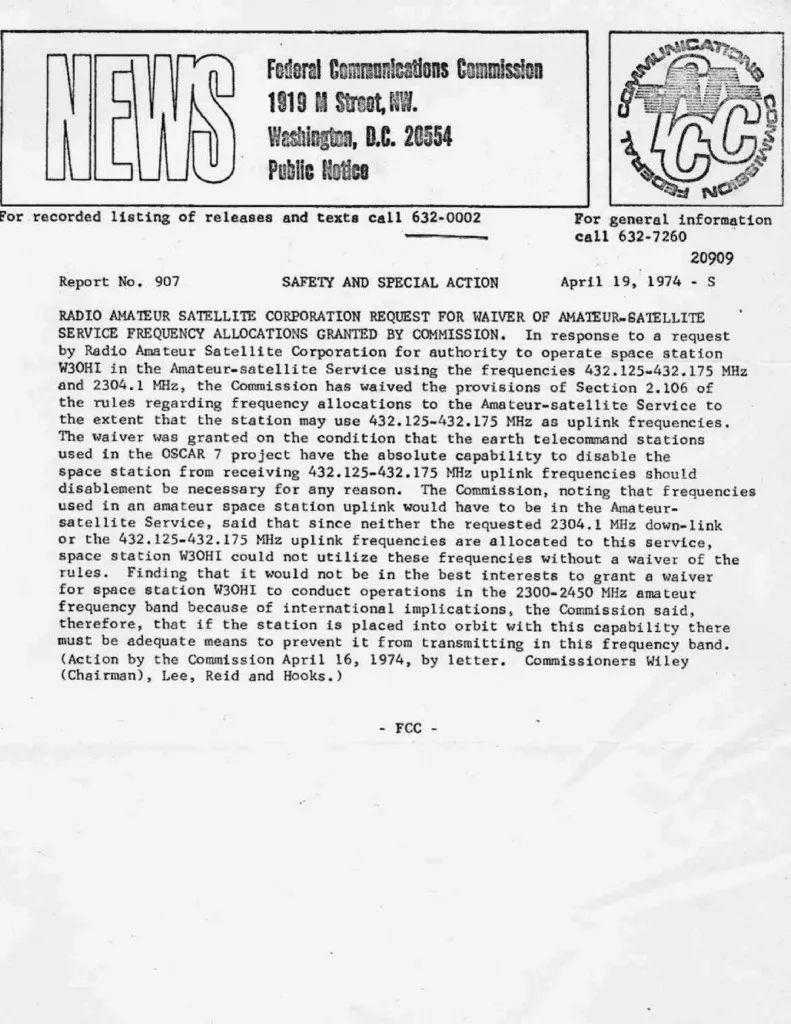 (注意:在AO-7上的432MHz上行链路是在实施435-438MHz卫星子带之前设计的。目前,美国的运营受到了FCC的豁免,包括在本页底部。)