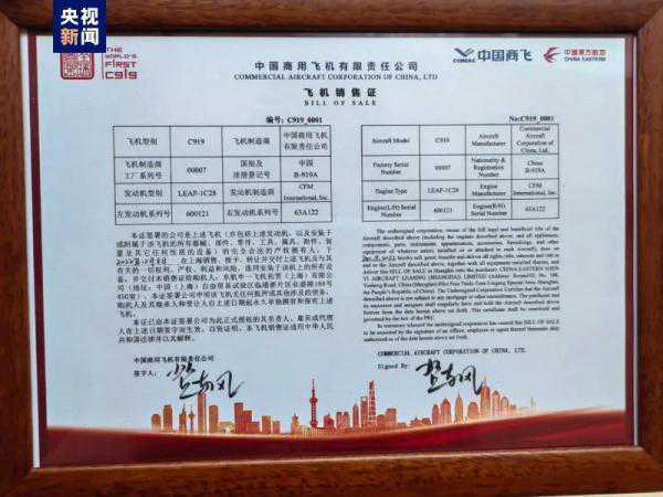 在当天的交付环节,中国商飞向中国东航交付“C919全球首架纪念钥匙”,颁发飞机销售证;中国民航局华东管理局向中国东航颁发国籍登记证、单机适航证(AC证)、电台执照,中国民航运输市场首次拥有中国自主研发的喷气式干线飞机。