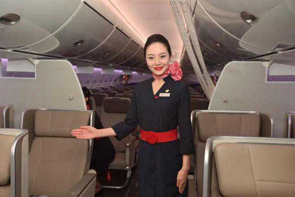 “乘坐舒适宽敞”将是C919今后服务旅客时鲜明的亮色——公务舱座椅为全铝合金框架结构,采用摇篮式设计,后靠可达120度、前后座椅间距超过1米;经济舱设计匠心甚至更让人惊艳:国际主要窄体机型的经济舱中,每排2组3联座椅的中间座位,因空间局促往往不受旅客青睐。而东航C919经济舱三联座中间座位比两边宽1.5cm,“中间座最宽”的人性化设计,用“一指宽度”让旅客多一分舒适。