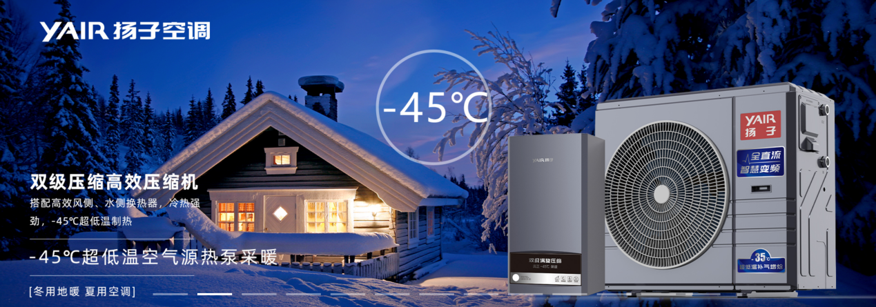 扬子空调携带两款独特的“大佬”产品参加本次展会。第一款是行业首创、能够在-45℃极寒环境下高效制热的超低温空气源热泵采暖机组。该产品采用的双级涡旋压缩技术,不仅具备了传统空气能机组无法比拟的超低温环境下制热能力,还在制热效率上实现了突破性的提升,无需电加热、只依靠纯粹的热泵能力,就能够在-45℃低温环境下产生65℃的高温热水,为消费者带来更加舒适和高效的采暖体验,一举打破困扰全球的超低温热泵的技术禁区!