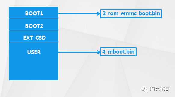 在前文中我们多次讲到,EMMC有四个分区,boot1区,boot2区,user区,EXT_CSD区。不同的芯片厂家,引导存放位置都不尽相同,MTK引导存放位置在user区的开始地址,Mstar引导存放位置在boot1区和user区的0x200000地址处。