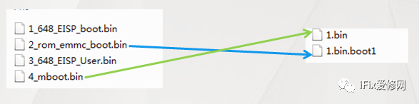 厂家提供了四个文件,多数小伙伴都不知道为什么是四个文件?四个文件的用途是什么?其实真正写入到EMMC芯片内部的只有两个就是排序2和4,也就是2_rom_emmc_和4_。