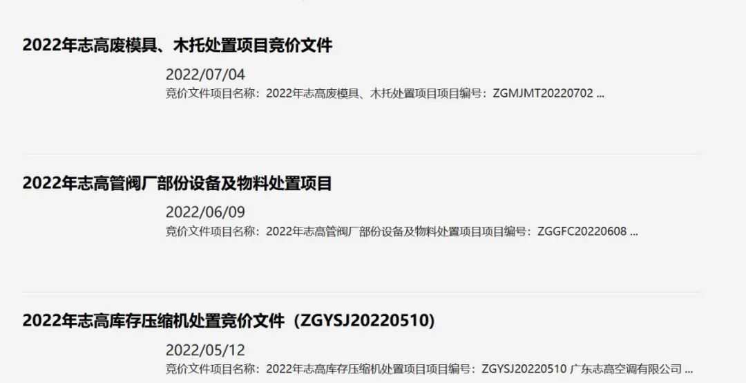 现如今,打开志高空调的官网,看到最多的不是产品,而是卖废品公告。
