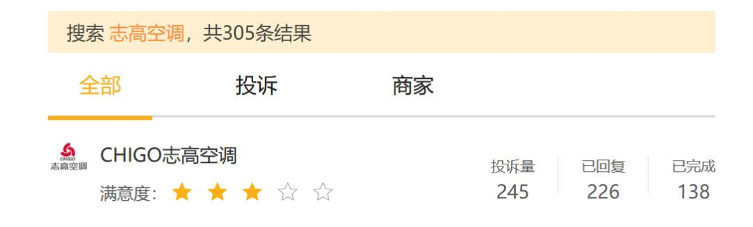 忽略产品本质后,更大的危机是口碑塌房。在黑猫投诉中,志高空调主要有200多条投诉,问题矛头指向售后和产品质量等方面。
