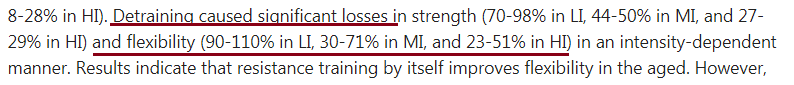 而且停训后,之前力训重量越大的组,柔韧性保持的越久、越好。