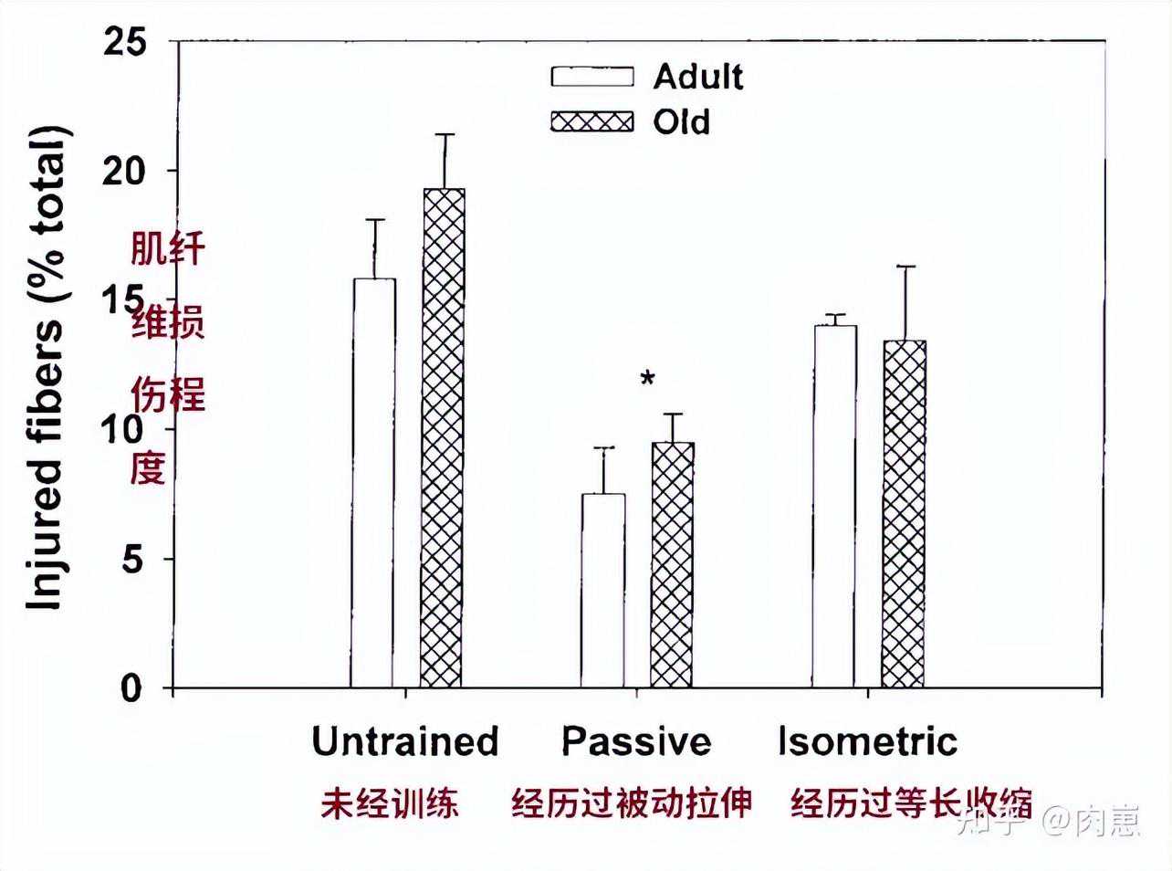 被动拉伸也可产生上述对肌肉的保护效应[57],汤米等人的研究中[58],大鼠在训练前经历了一段时间静态收缩和被动拉伸后,再次进行训练时,肌肉损伤明显减少。