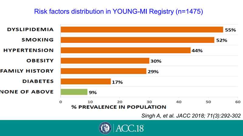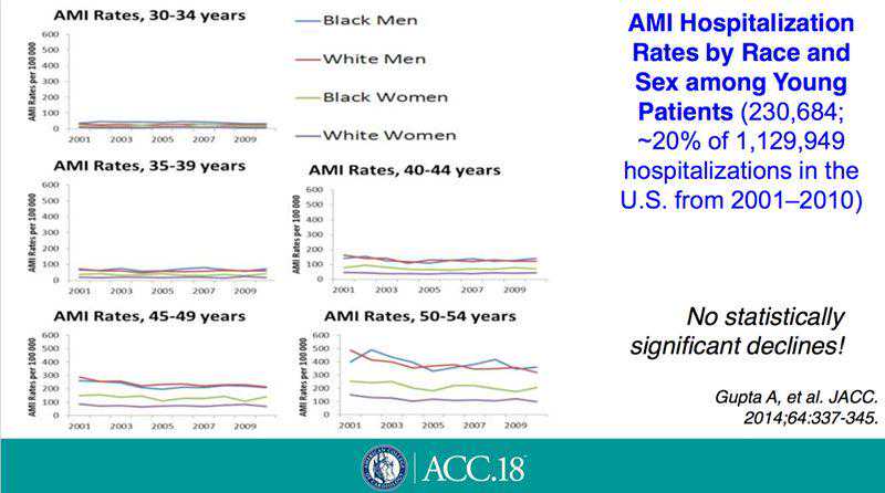 心肌梗死已成为全球最主要的疾病负担之一,近年来,其低龄化的倾向引起各国专家的高度重视。在美国心脏病学会(ACC)2018年会的国际心血管预防专场中,俄罗斯动脉粥样硬化学会主席MaratEzhov教授和心血管病专家AlexeyYakovlev教授对早发心肌梗死(prematureMI)的流行病学特点、病因及诊断进行了报告。