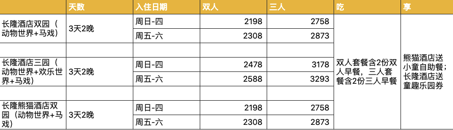 入住酒店方面,长隆酒店和长隆熊猫酒店在价格上没有任何区别,主要是风格和亮点的不同,大家按照各自需求选择入住即可。
