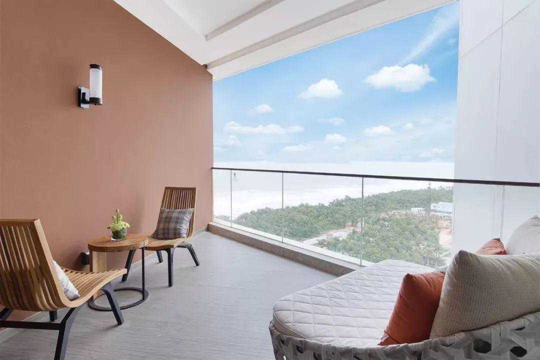 我这个没娃的人也去住过一次,同样喜欢得很。酒店所有的房型都是海景房,阳台大到奢侈,沙发躺椅啥的都有。