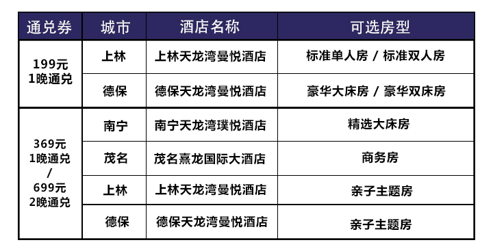 广西天龙湾璞悦酒店南宁广东茂名多店任选通兑